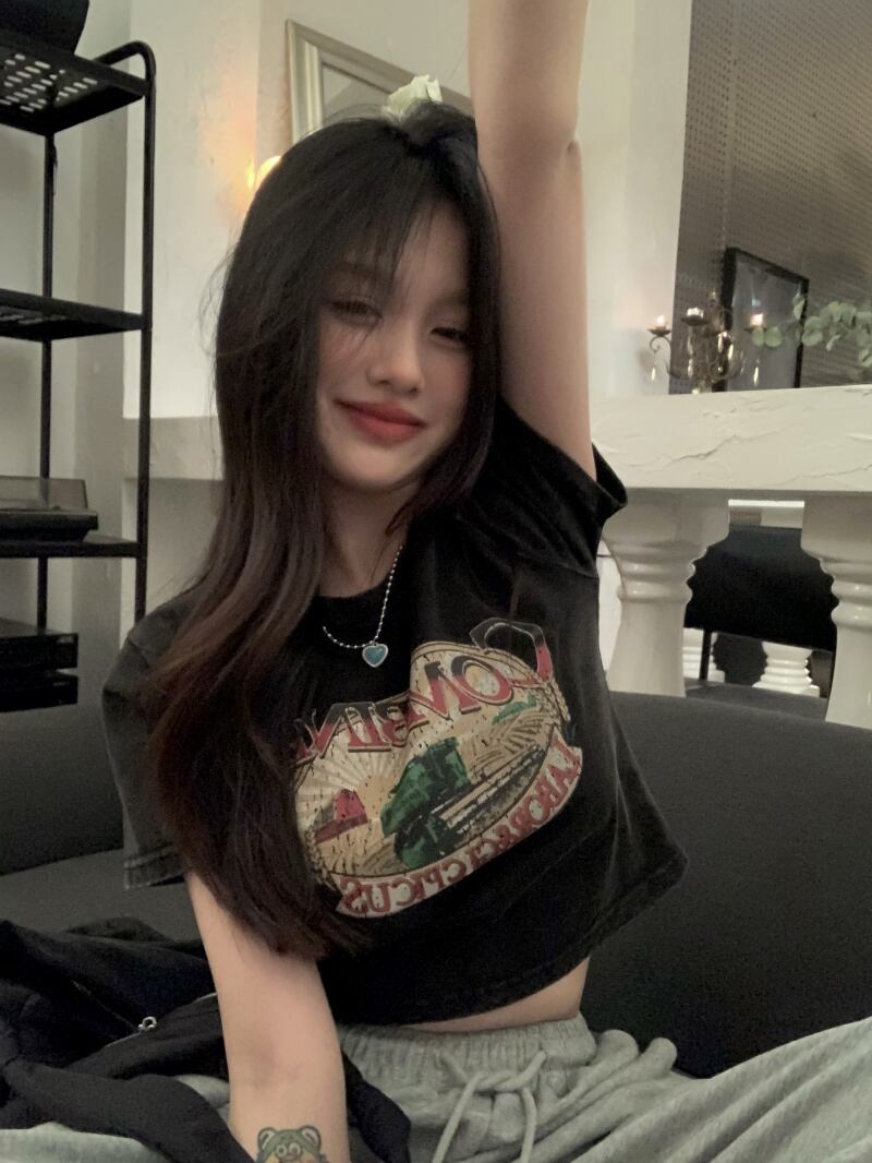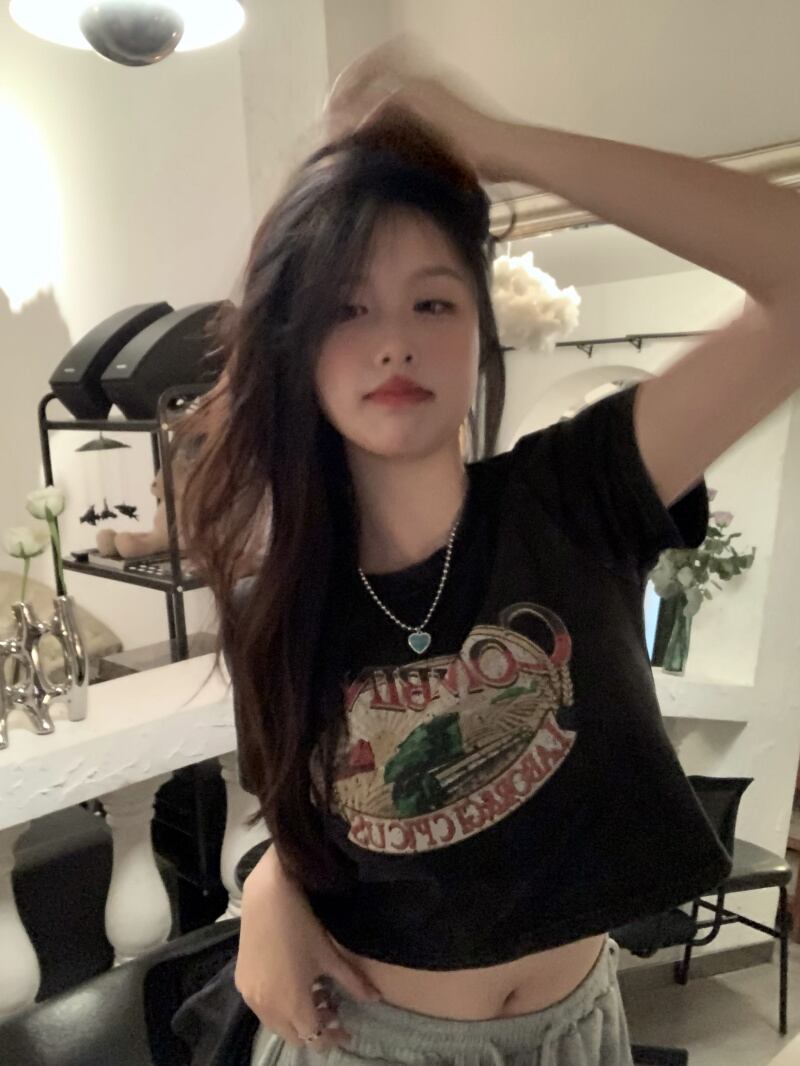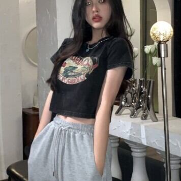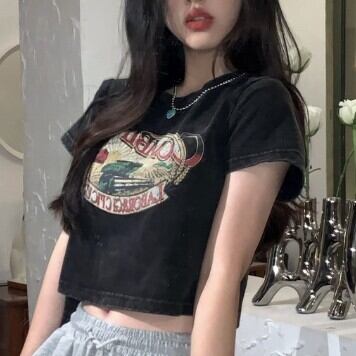 ショート丈 レトロ 柄 半袖 Tシャツ トップス カットソー ショート 袖あり ラウンドネック 襟なし かわいい 大人可愛い カジュアル 大人 おしゃれ お洒落 大人女子 こなれ感 個性的 プリント 夏 10代 20代 レディース 通勤 学生 通学 デート お出かけ 女子会 休日 旅行 着回し 普段使い 重ね着 韓国 韓国系 オルチャン ゆったり ゆる フリーサイズ 色展開 黒 ブラック