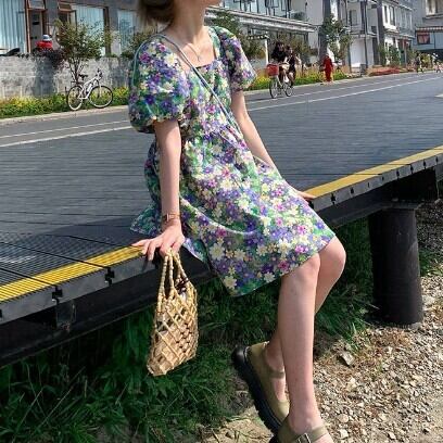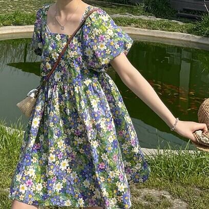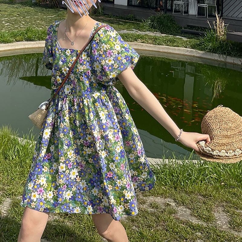 レディース ファッション 個性的 小花柄 スクエアネック ミニ ワンピース フレアワンピース ミニ丈 膝上 袖あり 半袖 パフスリーブ 襟なし フレア Aライン 切り替えデザイン シフォン ハイウエスト ポリエステル かわいい 大人可愛い カジュアル 大人 おしゃれ お洒落 大人女子 ラブリー キュート ガーリー 主役級 存在感 柄 フラワー 春 夏 10代 20代 通勤 学生 通学 デート お出かけ 女子会 休日 旅行 着回し 普段使い 重ね着 韓国 韓国系 大きいサイズ S M L XL 2XL 花柄