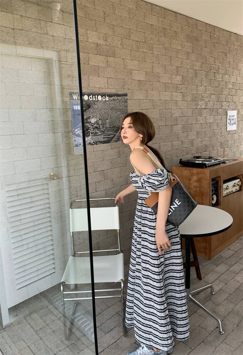 レディース ファッション 個性的 ボーダー柄 2way マキシ丈 ワンピース フレアワンピース 膝下 ロング ロング丈 マキシ 袖あり 半袖 パフスリーブ スクエアネック オフショルダー オフショル フレア スリム Aライン 切り替えデザイン シフォン ハイウエスト かわいい 大人可愛い カジュアル 大人 おしゃれ お洒落 ラフ ルーズ シマ 夏 10代 20代 30代 通勤 学生 通学 デート お出かけ 公園デビュー 女子会 休日 旅行 着回し 普段使い 楽ちん ゆったり サイズ S M ボーダー 柄