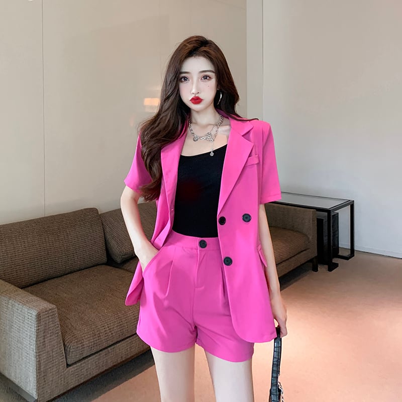 レディース ファッション 個性的 セットアップ 半袖 ジャケット パンツ 2点セット 上下セット ボトムス アウター ズボン 上着 ショート丈 袖あり Vネック 襟付き スリット バックスリット ポケット ハイウエスト 伸縮性 ツーピース かわいい 大人可愛い シンプル カジュアル 大人 おしゃれ お洒落 かっこいい 大人女子 こなれ感 クール 無地 春 夏 10代 20代 通勤 学生 通学 デート お出かけ 女子会 休日 旅行 着回し 普段使い 重ね着 韓国 S M L 黒 ブラック ローズレッド