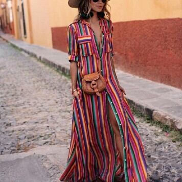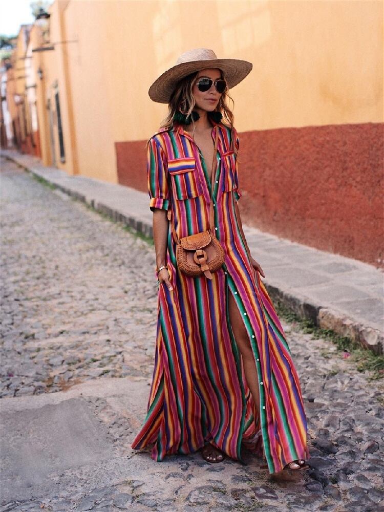 レディース ファッション 個性的 半袖 マキシ丈 シャツワンピース シャツ ワンピース 膝下 ロング ロング丈 マキシ 袖あり 五分袖 Vネック 襟付き 前開き 大人可愛い カジュアル 大人 おしゃれ お洒落 レトロ アジアン エスニック 大人女子 こなれ感 ラフ ルーズ 存在感 柄 ストライプ シマ 春 夏 10代 20代 30代 通勤 学生 通学 デート お出かけ 公園デビュー 女子会 休日 リゾート 旅行 海 プール 着回し 普段使い 重ね着 楽ちん 体系カバー ゆったり サイズ S M L XL