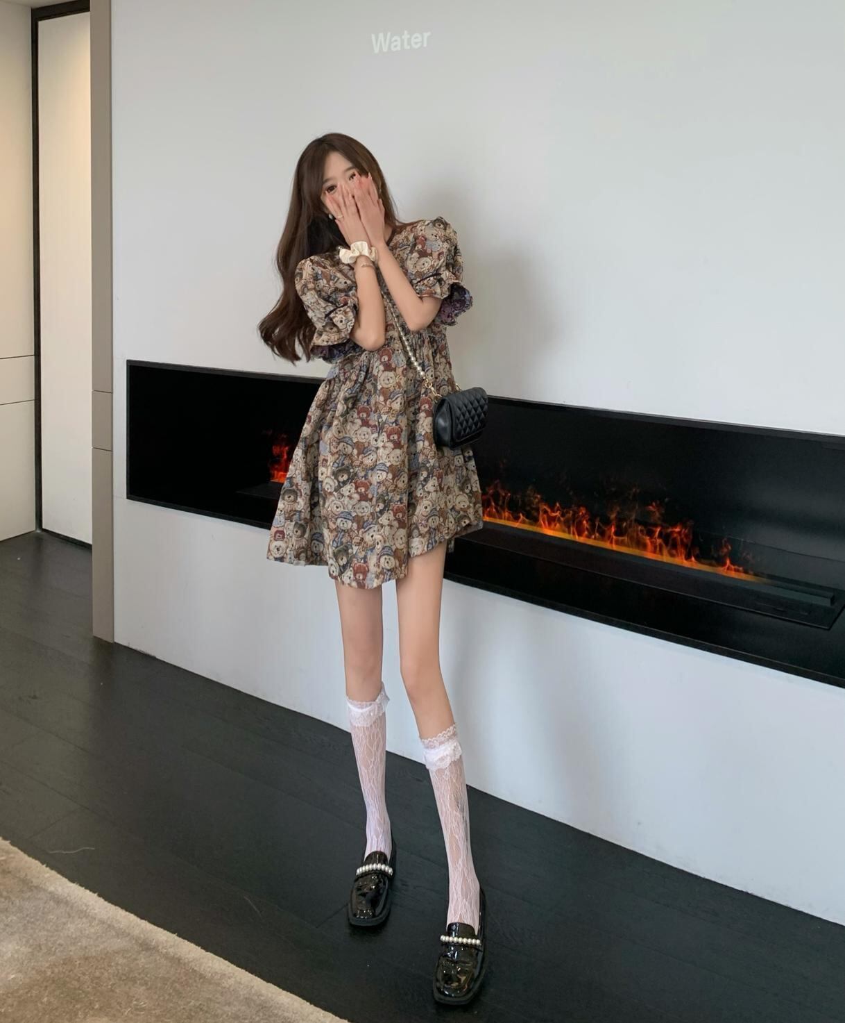 このワンピースはクマ柄の個性豊かなデザインがポイントです。大人っぽくアレンジするのも良し、かわいらしく合わせるのも良し。思わず私だけのスタイリングを考えたくなる、存在感のある主役級のアイテムとなっております。通学や通勤、休日や旅行など、あらゆるシーンに活躍できる優秀アイテムです。