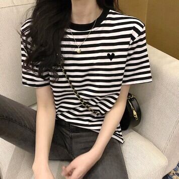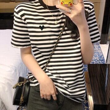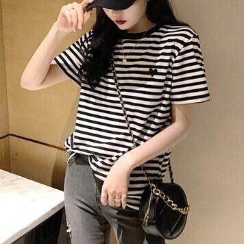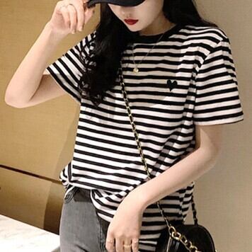 レディース ファッション 個性的 カラバリ ボーダー柄 半袖 Tシャツ トップス カットソー ミディアム丈 袖あり ドロップショルダー ラウンドネック 襟なし かわいい 大人可愛い カジュアル 大人 おしゃれ お洒落 大人女子 こなれ感 ルーズ ハート 柄 ボーダー プリント シマ 夏 10代 20代 通勤 学生 通学 デート お出かけ 女子会 旅行 着回し 普段使い 重ね着 韓国 韓国系 オルチャン ゆったり ゆる 大きいサイズ S M L XL 2XL 色展開 白 ホワイト 黒 ブラック ボーダー柄