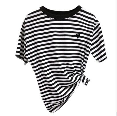 シマ模様にハート柄が散りばめられたデザインは、大人可愛い印象で、女子力アップにも一役買ってくれます。夏のおしゃれにぴったりなアイテムです。S~2XLまでの大きいサイズ展開で、様々な体型の方にも対応できます。