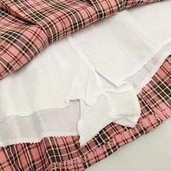 個性的なチェック柄が可愛い、レディースファッションの上下セットです。トップスはスクエアネックとフリルのデザインがかわいく、半袖で夏にぴったり。ボトムスはハイウエストのプリーツスカートで、ミニ丈なので足元も抜群のカワイイさです!