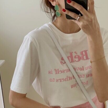 レディース ファッション 個性的 カラバリ 刺繍 ロゴ入り 半袖 Tシャツ トップス ミディアム丈 袖あり ラウンドネック 襟なし 綿 かわいい 大人可愛い カジュアル 大人 おしゃれ お洒落 大人女子 ロゴ 夏 10代 20代 通勤 学生 通学 デート お出かけ 女子会 休日 旅行 着回し 普段使い 重ね着 韓国 韓国系 オルチャン ゆったり ゆる フリーサイズ 色展開 白 ホワイト 灰色 グレー ピンク ネイビー 低価格 コスパ 値段重視 低予算 インポート 簡単 ギフト 海外 イメチェン 好感度