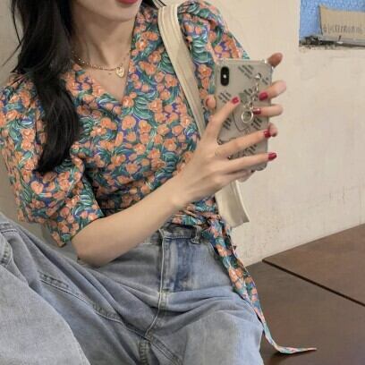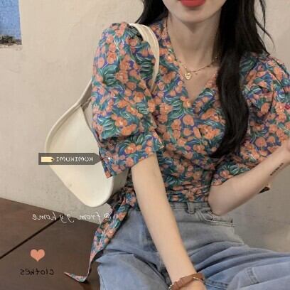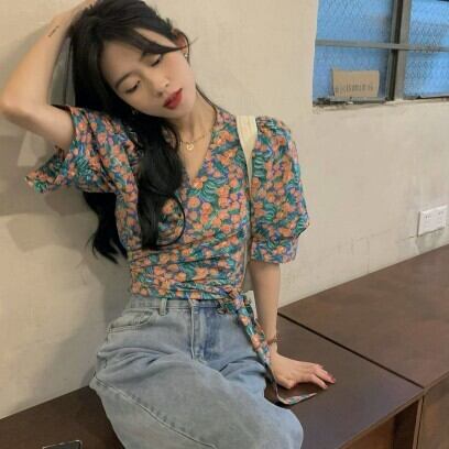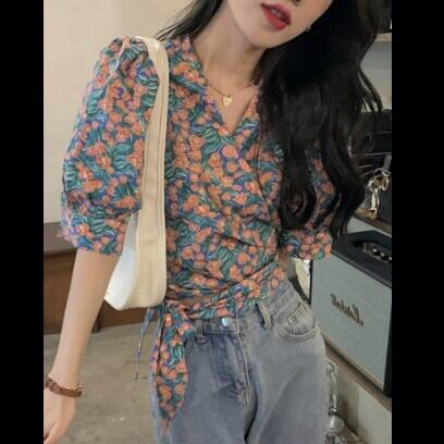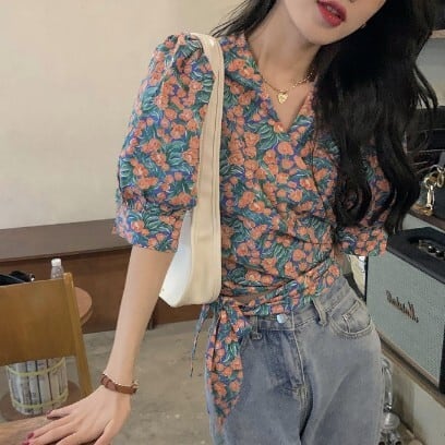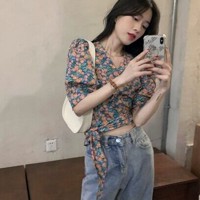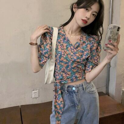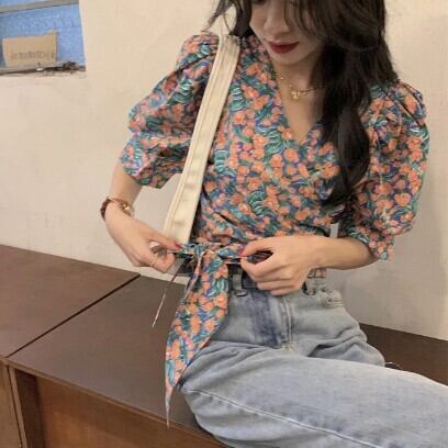 レディース ファッション 個性的 総花柄 パフスリーブ ショート丈 ブラウス トップス ショート 袖あり 半袖 Vネック カシュクール 襟なし スリム 細身 リボン ウエストリボン かわいい 大人可愛い きれいめ カジュアル 大人 上品 おしゃれ お洒落 レトロ 大人女子 ラブリー キュート ガーリー 主役級 存在感 柄 小花柄 フラワー 春 夏 10代 20代 通勤 学生 通学 デート お出かけ 女子会 休日 旅行 着回し 普段使い 重ね着 韓国 韓国系 オルチャン フリーサイズ 花柄 低価格 コスパ
