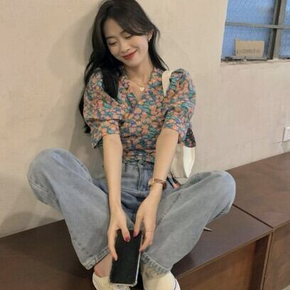 大き目で大人かわいい花柄のショート丈ブラウスです。