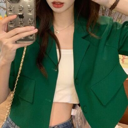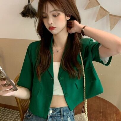 レディース ファッション 個性的 カラバリ Vネック ショート丈 半袖 ジャケット アウター 上着 ショート 袖あり 襟付き スリム 細身 ポケット 前開き かわいい 大人可愛い シンプル カジュアル 大人 おしゃれ お洒落 大人女子 こなれ感 無地 春 夏 10代 20代 通勤 学生 通学 デート お出かけ 女子会 休日 旅行 着回し 普段使い 重ね着 韓国 韓国系 オルチャン フリーサイズ 色展開 白 ホワイト 黒 ブラック 緑 グリーン ワインレッド 低価格 コスパ 値段重視 低予算 インポート