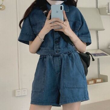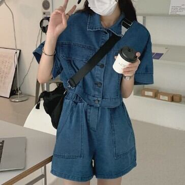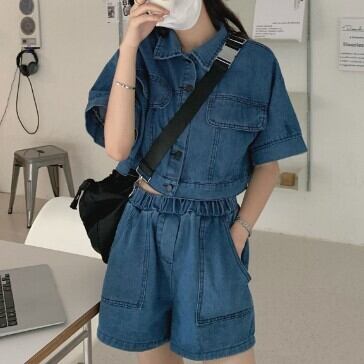 レディース ファッション 個性的 デニム セットアップ 上下セット 2点セット トップス ボトムス パンツ ジャケット ズボン ワイドパンツ ショートパンツ ショート ショート丈 袖あり 半袖 襟付き ワイド ポケット ハイウエスト 前開き ブルーデニム ツーピース かわいい 大人可愛い シンプル カジュアル 大人 おしゃれ お洒落 大人女子 こなれ感 無地 夏 10代 20代 通勤 学生 通学 デート お出かけ 女子会 休日 旅行 着回し 普段使い 重ね着 韓国 ゆったり サイズ S M L 青 ブルー