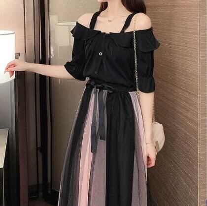 オトナ女子っぽいオフショルブラウスとチュールスカートの2点セットです。
