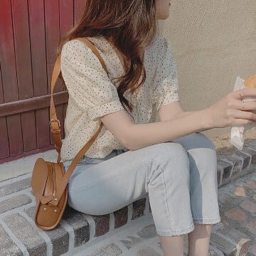 流行のドット柄のシフォンシャツブラウスです。