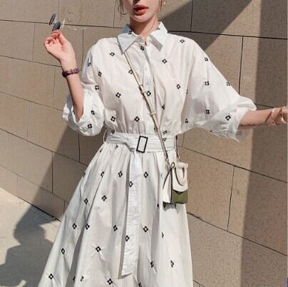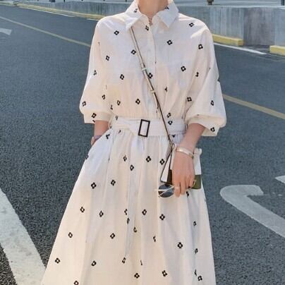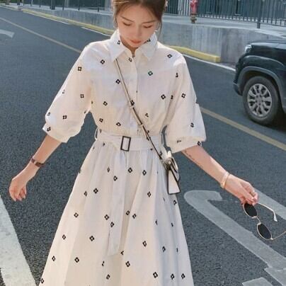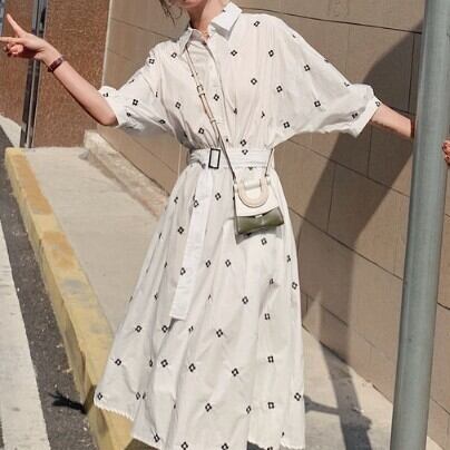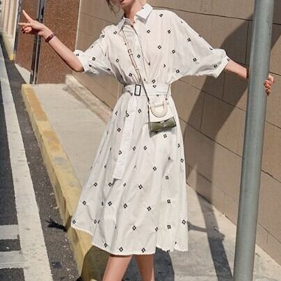 レディース ファッション 個性的 花柄 ワンピース シャツワンピース 膝下 ミモレ ミモレ丈 袖あり 半袖 パフスリーブ 襟付き Aライン ベルト ウエストマーク ハイウエスト かわいい 大人可愛い シンプル カジュアル 大人 おしゃれ お洒落 大人女子 主役級 柄 小花柄 フラワー 夏 10代 20代 通勤 学生 通学 デート お出かけ 女子会 休日 旅行 海 着回し 普段使い 重ね着 韓国 韓国系 オルチャン 楽ちん ゆったり サイズ S M L 低価格 コスパ 値段重視 低予算 インポート 簡単