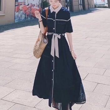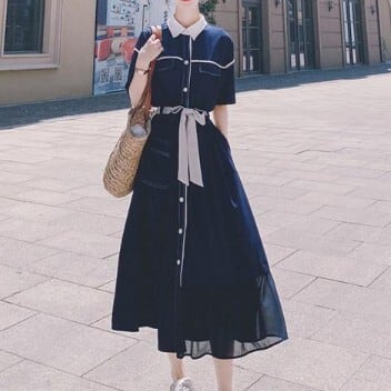 レディース ファッション 個性的 バイカラーシャツワンピース ワンピース シャツワンピース 膝下 ミモレ ミモレ丈 袖あり 半袖 襟付き フレア リボン ウエストマーク ウエストリボン 前開き かわいい 大人可愛い シンプル カジュアル 大人 おしゃれ お洒落 レトロ 大人可愛い 大人女子 こなれ感 ラブリー キュート ガーリー 主役級 存在感 無地 春 夏 10代 20代 30代 学生 通学 デート お出かけ 女子会 休日 着回し 普段使い 重ね着 韓国 韓国系 サイズ S M L XL 低価格 コスパ