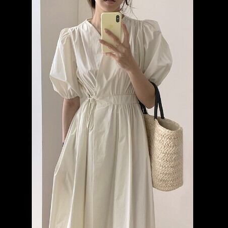 レディース ファッション 個性的 カシュクールワンピース ワンピース フレアワンピース ロング ロング丈 袖あり 半袖 パフスリーブ Vネック フレア ウエストリボン かわいい 大人可愛い きれいめ シンプル カジュアル 大人 おしゃれ お洒落 大人可愛い 大人女子 こなれ感 ラブリー キュート ガーリー 主役級 存在感 無地 0 春 夏 10代 20代 30代 学生 通学 デート お出かけ 公園デビュー 女子会 休日 着回し 普段使い 韓国 韓国系 色展開 白 ホワイト 海外 イメチェン 好感度