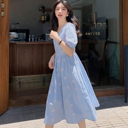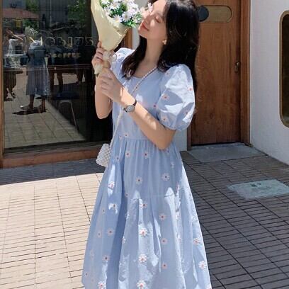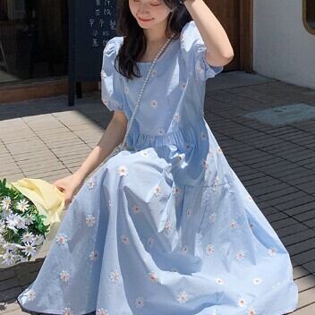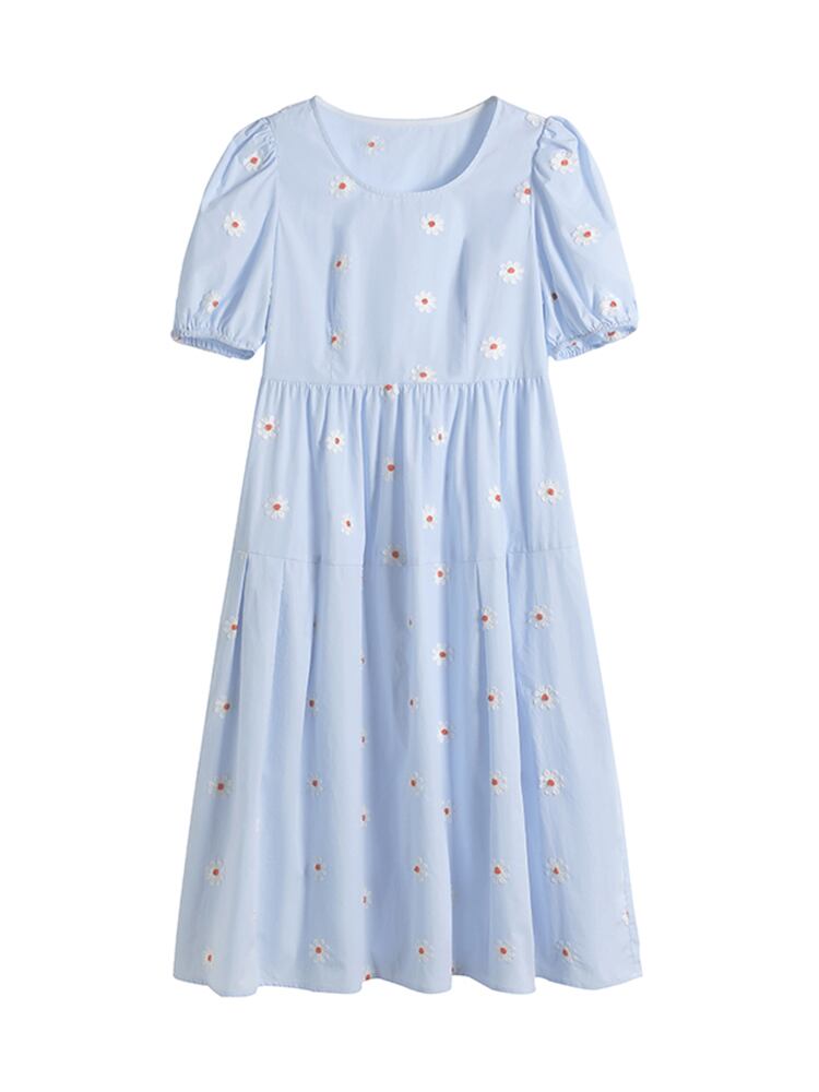 レディース ファッション 個性的 デイジー刺?ワンピース ワンピース フレアワンピース 膝丈 ひざ丈 ミモレ ミモレ丈 袖あり 半袖 パフスリーブ ラウンドネック フレア 刺繍 綿 かわいい 大人可愛い シンプル カジュアル おしゃれ お洒落 大人可愛い 大人女子 ラブリー キュート ガーリー 主役級 柄 花柄 フラワー 春 夏 10代 20代 30代 学生 通学 デート お出かけ 女子会 休日 着回し 普段使い 重ね着 韓国 韓国系 サイズ L XL 2XL 3XL 4XL 海外 イメチェン 好感度