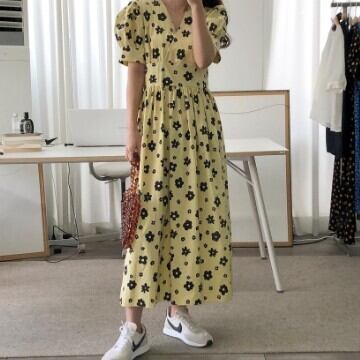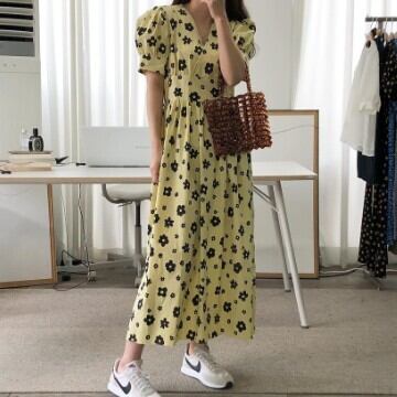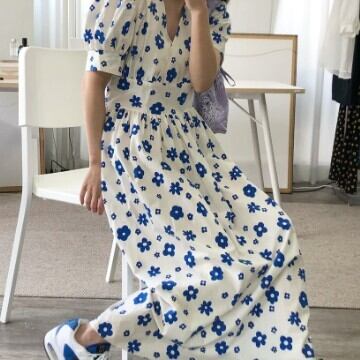 レディース ファッション 個性的 花柄ロングワンピース ワンピース フレアワンピース ロング ロング丈 マキシ マキシ丈 袖あり 半袖 パフスリーブ Vネック フレア ハイウエスト 綿 ポリエステル かわいい 大人可愛い シンプル カジュアル おしゃれ お洒落 レトロ 大人可愛い 大人女子 こなれ感 ラブリー キュート ガーリー 主役級 存在感 柄 花柄 フラワー 春 夏 10代 20代 30代 学生 通学 デート お出かけ 公園デビュー 女子会 休日 着回し 普段使い 韓国 韓国系 色展開 白 簡単