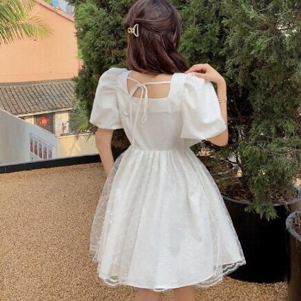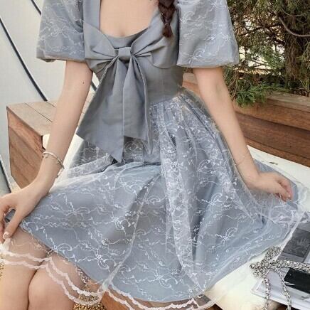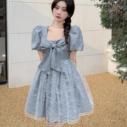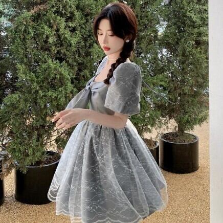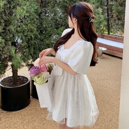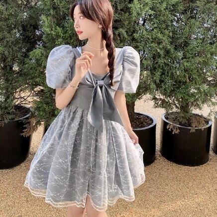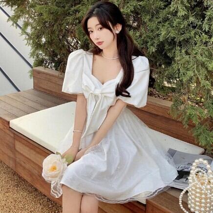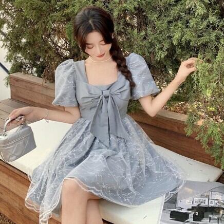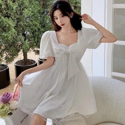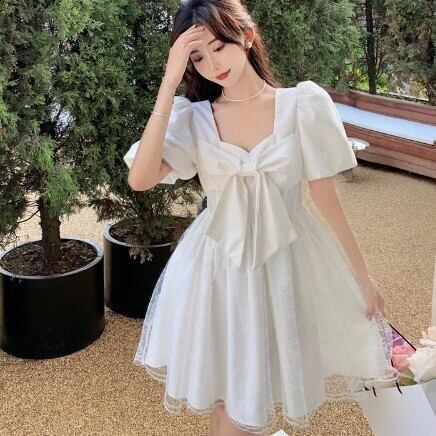レディース ファッション 個性的 ビックリボンワンピース ワンピース フレアワンピース ワンピドレス ミニ ミニ丈 袖あり 半袖 パフスリーブ スクエアネック フレア Aライン レース チュール リボン 透け感 シースルー かわいい 大人可愛い きれいめ 大人 上品 おしゃれ お洒落 レトロ 大人可愛い 大人女子 こなれ感 ラブリー キュート ガーリー 主役級 無地 春 夏 10代 20代 30代 学生 通学 デート お出かけ 公園デビュー 女子会 休日 着回し 普段使い 韓国 韓国系 モテ S M