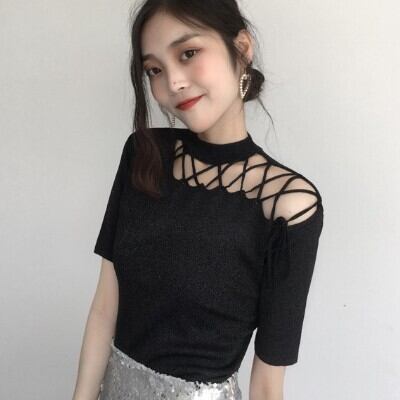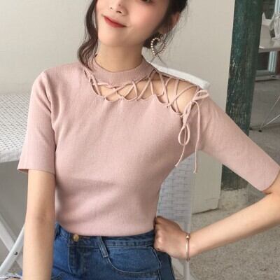 トップス 半袖 Tシャツ レディース ファッション 個性的 袖あり レースアップ 穴あき 肌魅せ 肩見せ 肩出し 無地 イレギュラー アシメ デザイン ラウンドネック スリム 細身 大人可愛い かわいい 可愛い 大人女子 おしゃれ お洒落 通勤 通学 学生 お出かけ デート 旅行 休日 普段着 普段使い 着回し 10代 20代 夏 ワンサイズ アプリコット ブルー 青 合わせやすい 低価格 コスパ 値段重視 低予算 インポート 簡単 ギフト 海外 イメチェン 好感度 イメージアップ 外国 注目 大特価