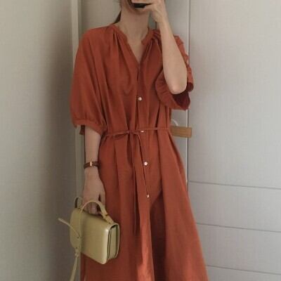 シャツワンピース レディース ファッション 個性的 ロング ロング丈 半袖 袖あり 5分袖 五分袖 パフ袖 パフスリーブ シャツ ワンピース フロントボタン Vネック 開襟 薄い シンプル 無地 腰紐 ウエストマーク ゆったり ゆる ルーズ ラフ 楽ちん こなれ感 抜け感 大人 カジュアル 大人可愛い かわいい 可愛い 大人女子 おしゃれ お洒落 通勤 通学 学生 お出かけ デート 旅行 休日 普段着 普段使い 着回し 10代 20代 30代 春 夏 秋 大きいサイズ S M L XL 合わせやすい