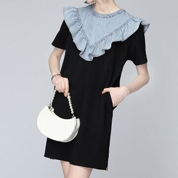 レディース ファッション 個性的 デニムドッキングワンピース ワンピース ミニ ミニ丈 袖あり 半袖 ラウンドネック Iライン ドッキング フリル ドッキング デニム かわいい 大人可愛い きれいめ シンプル 大人 上品 おしゃれ お洒落 大人可愛い 大人女子 ラブリー キュート ガーリー 主役級 無地 春 夏 10代 20代 30代 学生 通学 デート お出かけ 女子会 休日 着回し 普段使い サイズ S M L XL 2XL 合わせやすい 低価格 コスパ 値段重視 低予算 インポート 簡単 ギフト