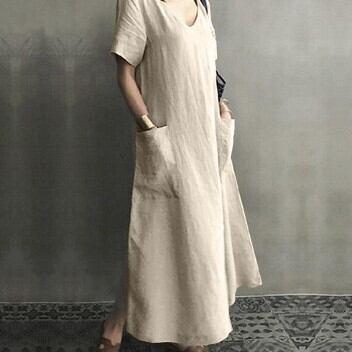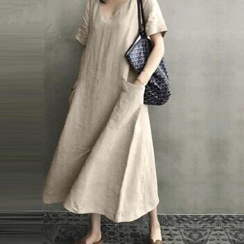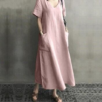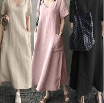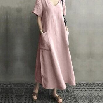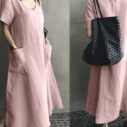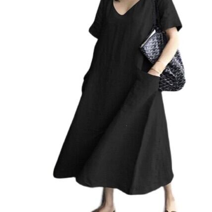 半袖Ⅴネックワンピース レディース ファッション 個性的 ワンピース フレアワンピース ロング ロング丈 マキシ マキシ丈 袖あり 半袖 Vネック ポケット 綿 麻 リネン かわいい 大人可愛い シンプル カジュアル 大人 おしゃれ お洒落 大人可愛い 大人女子 こなれ感 ラフ キュート ガーリー 無地 10代 20代 30代 40代 普段使い 重ね着 楽ちん サイズ M L XL 2XL 3XL 4XL 5XL 色展開 黒 ブラック ピンク 合わせやすい 低価格 コスパ 値段重視 低予算 インポート