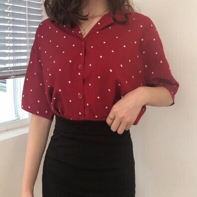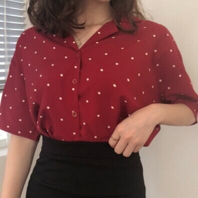 昔っぽいドット柄デザインの半袖開襟シャツブラウスです!