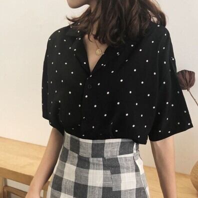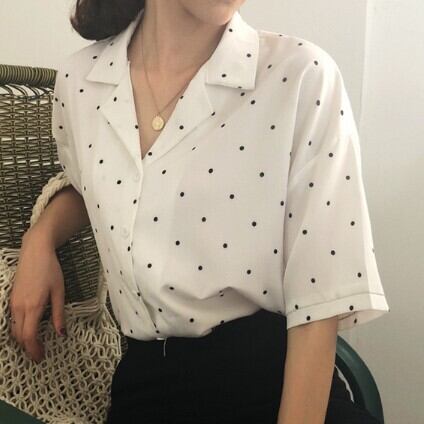レディース ファッション 個性的 ドット柄開襟シャツ トップス シャツ 袖あり 半袖 Vネック 襟付き 前開き かわいい 大人可愛い シンプル カジュアル 大人 おしゃれ お洒落 大人可愛い 大人女子 ラブリー キュート ガーリー 存在感 柄 ドット柄 水玉 春 夏 10代 20代 30代 学生 通学 デート お出かけ 公園デビュー 女子会 休日 着回し 普段使い 重ね着 サイズ S M L XL 2XL 色展開 白 ホワイト 黒 合わせやすい 低価格 コスパ 値段重視 低予算 インポート 簡単 ギフト