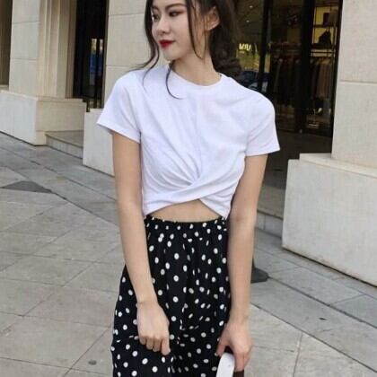 レディース ファッション 個性的 ウエストツイストTシャツ トップス Tシャツ ショート ショート丈 袖あり 半袖 ラウンドネック 綿 ポリエステル かわいい 大人可愛い シンプル カジュアル 大人 おしゃれ お洒落 大人可愛い 大人女子 こなれ感 主役級 存在感 無地 春 夏 10代 20代 30代 学生 通学 デート お出かけ 公園デビュー 女子会 休日 着回し 普段使い 重ね着 韓国 韓国系 サイズ S M L XL 2XL 色展開 白 ホワイト 合わせやすい 低価格 コスパ 値段重視 低予算