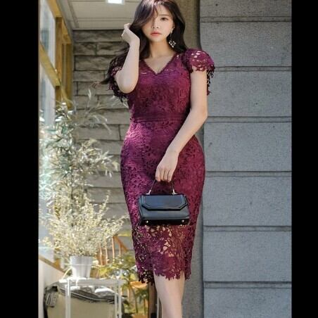 上品な感じのタイトなフォルムレースワンピースです。