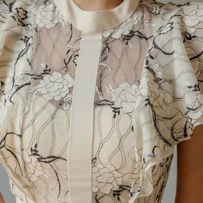 レディース ファッション 個性的 フリルスリーブレースワンピース ワンピース ワンピドレス 膝丈 ひざ丈 袖あり 半袖 フレアスリーブ スタンドカラー 細身 ストレート Iライン レース フリル ウエストマーク 透け感 シースルー かわいい 大人可愛い きれいめ シンプル カジュアル 大人 上品 おしゃれ お洒落 大人可愛い 大人女子 こなれ感 ラブリー キュート ガーリー 主役級 存在感 柄 花柄 春 夏 10代 20代 30代 デート お出かけ 女子会 休日 パーティー イベント 普段使い 韓国