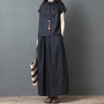 個性的でオシャレなシャツとフレアスカートの2点セットが登場!袖ありの半袖シャツは、襟付きで女性らしさをアピールできます。一方、ロング丈で上品な雰囲気を醸し出すマキシ丈のフレアスカートは、綿麻リネン素材で通気性も抜群。上下の組み合わせはもちろん、重ね着スタイルにも合わせやすいので、コーデの幅が広がります。しかも、カジュアルからきれいめまで、様々なシーンに着用できる優れものです。機能性も抜群で、ウエスト部分にゴムがあり、調節が簡単にできます。サイズはM、L、XLの3サイズ展開で、黒の無地カラーもあるので、幅広い年代やスタイルの方にオススメです。是非、このセットアップで自分らしいコーデを楽しんでください!