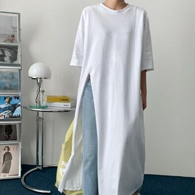 レディース ファッション 個性的 ロング丈 Tシャツ 半袖 袖あり ロングTシャツ トップス ワンピース シンプル 無地 ロング スリット ラウンドネック コットン 綿 薄手 ゆったり ゆる ルーズ 大きめ 体型カバー ママ 公園デビュー お洒落 お洒落 カジュアル 通勤 通学 学生 お出かけ デート 旅行 休日 普段着 普段使い 着回し 10代 20代 30代 夏 S M L XL ホワイト 白 値段重視 低予算 インポート 簡単 ギフト 海外 イメチェン 好感度 イメージアップ 外国 注目 大特価