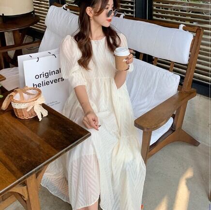 レディース ファッション 個性的 パフスリーブワンピース ワンピース フレアワンピース ロング ロング丈 袖あり 半袖 パフスリーブ ラウンドネック フレア かわいい 大人可愛い きれいめ シンプル カジュアル 大人 おしゃれ お洒落 大人可愛い 大人女子 こなれ感 ラブリー キュート ガーリー 主役級 存在感 無地 春 夏 10代 20代 30代 学生 通学 デート お出かけ 公園デビュー 女子会 休日 着回し 普段使い 重ね着 韓国 韓国系 サイズ M L XL 2XL 3XL 女の子