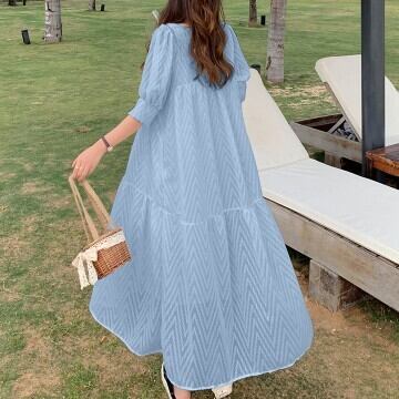 個性的なデザインが魅力のパフスリーブワンピース。ロング丈でどんなシーンでも活躍し、ラウンドネックとフレアシルエットが大人可愛く仕上げます。半袖のパフスリーブが女性らしい雰囲気を醸し出し、存在感のある一着です。シンプルなデザインで、大人の方から10代の方まで、幅広い層にご愛用いただけます。