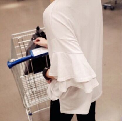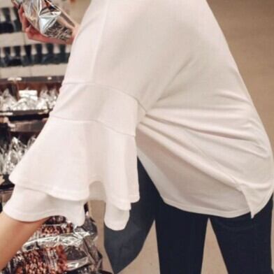 新作の袖フリルTシャツが入荷しました!綿とポリエステルを使用した柔らかく伸縮性に優れた素材で、体に馴染むような心地よい着心地です。シンプルでありながら袖のフリルで個性的なデザインなので、どんなシーンでも合わせやすく、カジュアルからきれいめスタイルまで幅広くお使いいただけます。