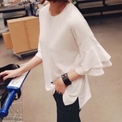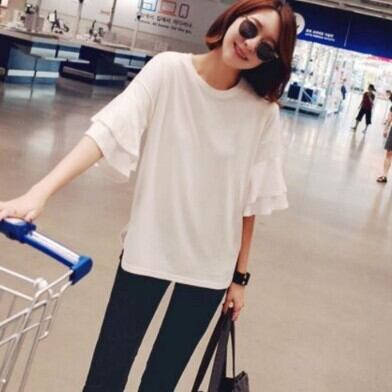 レディース ファッション 個性的 袖フリルTシャツ トップス Tシャツ 袖あり 半袖 ラウンドネック フリル 綿 ポリエステル かわいい 大人可愛い きれいめ シンプル カジュアル おしゃれ お洒落 大人可愛い 大人女子 こなれ感 無地 春 夏 10代 20代 30代 学生 通学 デート お出かけ 公園デビュー 女子会 休日 着回し 普段使い 重ね着 韓国 韓国系 オルチャン サイズ M L XL 2XL 色展開 女の子プレゼント 安いお得 合わせやすい 低価格 コスパ 値段重視 低予算 インポート 簡単