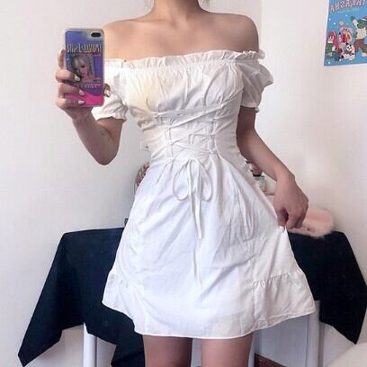 レディース ファッション 個性的 オフショルレースアップワンピース ワンピース フレアワンピース ショート ショート丈 膝上 袖あり 半袖 オフショルダー オフショル フレア Aライン リボン ポリエステル かわいい 大人可愛い シンプル カジュアル おしゃれ お洒落 大人可愛い 大人女子 ラブリー キュート ガーリー 無地 ボタニカル 春 夏 10代 20代 30代 学生 通学 デート お出かけ 女子会 休日 着回し 普段使い 韓国 韓国系 オルチャン サイズ S M L 色展開 女の子プレゼント 安い