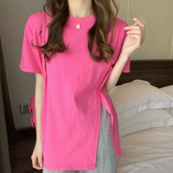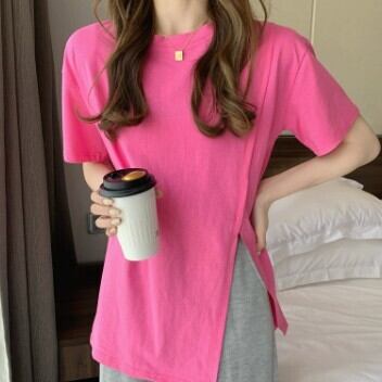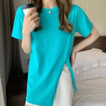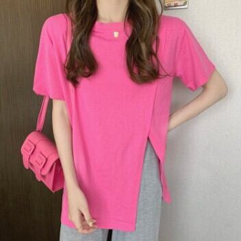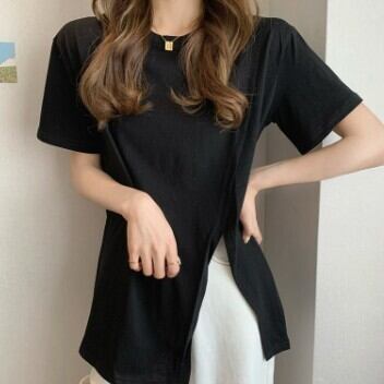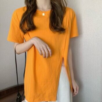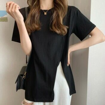 レディース ファッション 個性的 スリットTシャツ トップス Tシャツ 袖あり 半袖 ラウンドネック スリット 大人可愛い きれいめ シンプル カジュアル おしゃれ お洒落 大人可愛い 大人女子 こなれ感 無地 春 夏 10代 20代 30代 学生 通学 デート お出かけ 女子会 休日 着回し 普段使い 重ね着 韓国 韓国系 オルチャン サイズ S M L 色展開 白 ホワイト 黒 ブラック 青 ブルー 女の子プレゼント 安いお得 合わせやすい 低価格 コスパ 値段重視 低予算 インポート 簡単