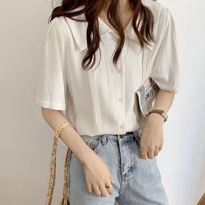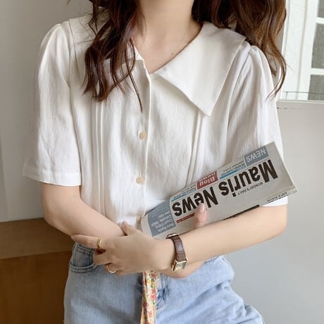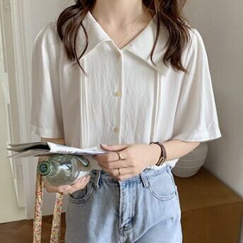 レトロ白シャツ トップス ブラウス 白シャツ 半袖 Vネック レディース ファッション 個性的 襟付き ゆったり ステッチ シンプル 上品 春 夏 秋 10代 20代 30代 40代 OL 学生 お出かけ アウトドア 着回し 普段使 女の子プレゼント 安いお得 合わせやすい 低価格 コスパ 値段重視 低予算 インポート 簡単 ギフト 海外 イメチェン 好感度 イメージアップ 外国 注目 大特価 人気 新作 話題 新入荷 今だけ 新品 目玉 母の日 誕生日 おすすめ コーデ 洋服 似合う 着回し 無難