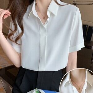 トップス シフォン レディース 半袖 ファッション 個性的 シャツ ブラウス 無地 シンプル 白シャツ 白ブラウス 白トップス しわ防止 襟付き ロールアップ ボタンなし 開襟 ポロ襟 抜け感 爽やか おしゃれ お洒落 大人 大人女子 大人可愛い かわいい 可愛い 通勤 通学 学生 OL オフィス お出かけ デート 旅行 休日 普段使い 着回し 10代 20代 夏 大きいサイズ S M L XL 2XL 女の子プレゼント 安いお得 合わせやすい 低価格 コスパ 値段重視 低予算 インポート 簡単 ギフト