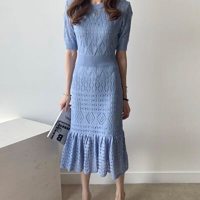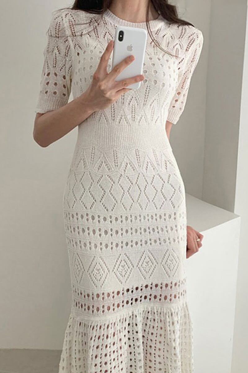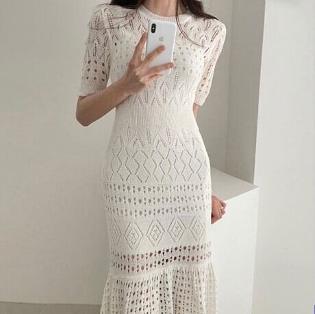 クロシェ編みワンピース フィッシュテール レディース ファッション 個性的 マーメイド ワンピース ワンピドレス ロング ロング丈 袖あり 半袖 ラウンドネック タイト マーメイド レース クロシェ 透け感 かわいい 大人可愛い きれいめ シンプル 大人 おしゃれ お洒落 大人可愛い 大人女子 こなれ感 エレガント 無地 春 夏 10代 20代 30代 デート お出かけ 女子会 休日 普段使い 韓国 韓国系 オルチャン 白 ホワイト 黒 ブラック 女の子プレゼント 安いお得 合わせやすい 低価格 コスパ