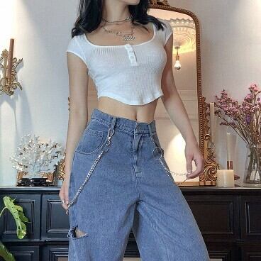 思い切って半袖でへそ出し!これ一枚でコーディネイトが決まる、キュートでセクシーなTシャツが登場しました。細身でタイトなシルエットなのでスッキリ着こなせ、女性らしいファッションにぴったりです。