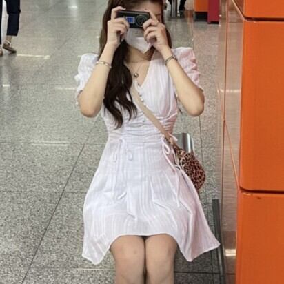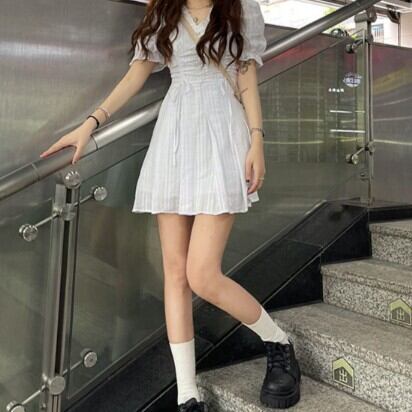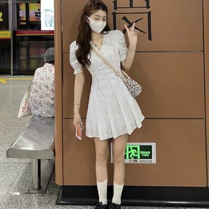 ワンピース ミニワンピース ミニ ミニ丈 ショート レディース ファッション 個性的 ショート丈 膝上 袖あり 半袖 パフスリーブ Vネック 切り替えデザイン プリーツ ウエストマーク 綿 かわいい 大人可愛い カジュアル おしゃれ お洒落 無地 春 夏 10代 20代 学生 デート お出かけ 女子会 休日 リゾート 旅行 海 プール 韓国 韓国系 オルチャン 楽ちん S M 女の子プレゼント 安いお得 合わせやすい 低価格 コスパ 値段重視 低予算 インポート 簡単 ギフト 海外 イメチェン 好感度