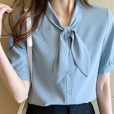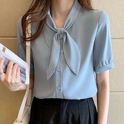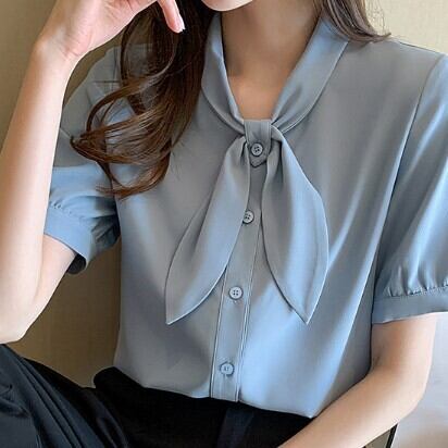 半袖だけど袖ありで、パフスリーブで可愛らしさをプラス。無地でシンプルながらも、リボン結びが女性らしさを引き出してくれます。さらに、シフォン素材なので見た目にも涼しげで、通学や通勤はもちろん、お出かけやデート、旅行、休日など幅広いシーンで活躍します。