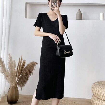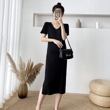 ワンピース ニット レディース 薄手 薄い 半袖 5分袖 ファッション 個性的 袖あり ロング マキシ丈 フロントボタン Aライン シンプル 無地 ドレープ スリム タイト 細身 ハイウエスト 切り替え ラウンドネック お洒落 おしゃれ 大人可愛い かわいい 可愛い 通勤 通学 学生 お出かけ デート 旅行 休日 普段着 普段使い カジュアル 10代 20代 夏 大きいサイズ S M L XL 2XL ブラック 女の子プレゼント 安いお得 合わせやすい 低価格 コスパ 値段重視 低予算 インポート 簡単