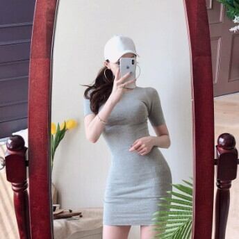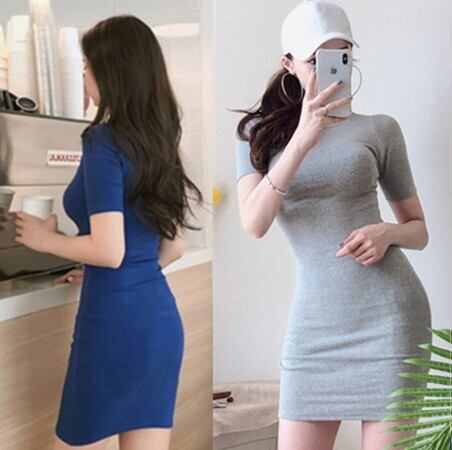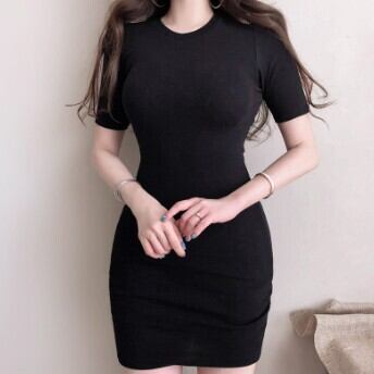 タイトワンピース ワンピース ショート ショート丈 膝上 レディース ファッション 個性的 袖あり 半袖 長袖 ラウンドネック タイト 細身 Iライン 綿 きれいめ シンプル カジュアル 大人 おしゃれ お洒落 大人可愛い 大人女子 無地 春 夏 10代 20代 30代 学生 通学 デート お出かけ 女子会 休日 着回し 普段使い 重ね着 韓国 韓国系 オルチャン サイズ S M L 黒 ブラック 青 ブルー 女の子プレゼント 安いお得 合わせやすい 低価格 コスパ 値段重視 低予算 インポート 簡単