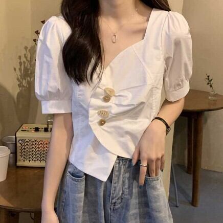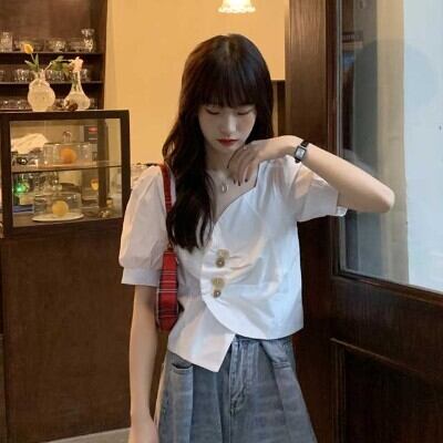 Ⅴネックブラウス トップス レディース ファッション 個性的 ブラウス 袖あり 半袖 パフスリーブ Vネック アシンメトリー かわいい 大人可愛い きれいめ シンプル カジュアル 大人 おしゃれ お洒落 大人可愛い 無地 ストライプ 春 夏 10代 20代 30代 学生 通学 デート お出かけ 女子会 休日 着回し 普段使い 重ね着 韓国 韓国系 オルチャン サイズ M L XL 2XL 3XL 4XL 大きいサイズ 女の子プレゼント 安いお得 合わせやすい 低価格 コスパ 値段重視 低予算 インポート