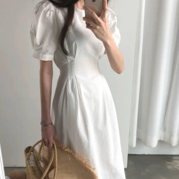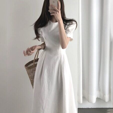 レディース ファッション 個性的 ロングワンピース ワンピース フレアワンピース 膝下 ロング ロング丈 袖あり 半袖 パフスリーブ ラウンドネック フレア Aライン 綿 麻 かわいい 大人可愛い きれいめ シンプル カジュアル おしゃれ お洒落 大人可愛い 大人女子 こなれ感 ラフ ラブリー キュート ガーリー 無地 春 夏 10代 20代 30代 OL 通勤 デート お出かけ 公園デビュー 女子会 休日 普段使い 韓国 韓国系 オルチャン サイズ S M L XL 白 安いお得 合わせやすい 低価格