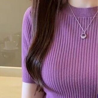 リブニット 半袖 無地 レディース ファッション 個性的 クルーネック ラウンドネック カラバリ インナー プルオーバー トップス 春 秋 大人可愛い きれいめ シンプルコーデ フォーマル 大人女子 カジュアル 通勤 オフィスカジュアル ビジネス OL 通学 学生 大学生 キャンパスコーデ おうちコーデ 休日 お出かけ デート 女子会 着回し 重ね着 使いやすい カラー パープル グリーン ピンク イエロー オレンジ ホワイト ブラック アプリコット サイズ女の子プレゼント 安いお得 合わせやすい 低価格